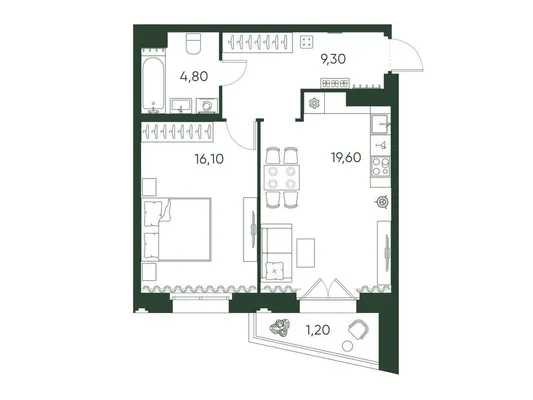 1-комн. 49,8 м²