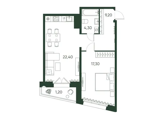1-комн. 38,8 м²