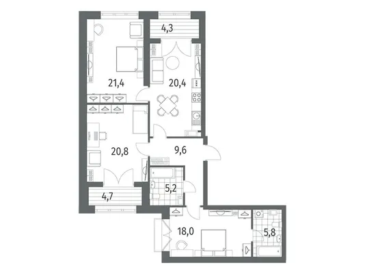 3-комн. 86,9 м²