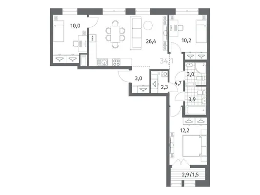 3-комн. от 66,85 до 66,97 м² от 12,09 млн до 12,43 млн ₽