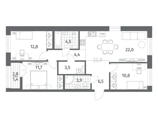 3-комн. от 77,72 до 78,55 м² от 14,06 млн до 14,34 млн ₽