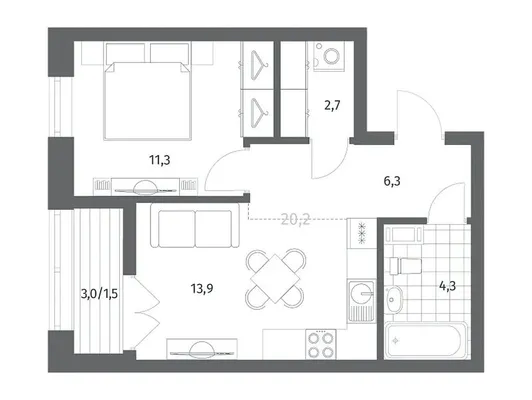 1-комн. от 39,6 до 40,9 м² от 6,94 млн до 7,36 млн ₽
