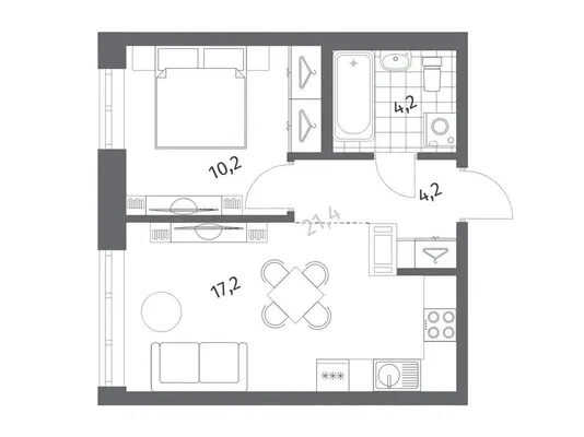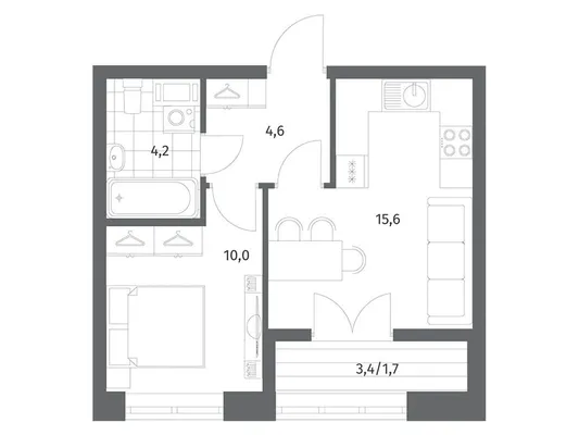 1-комн. от 33,2 до 34,79 м² от 6,11 млн до 8,54 млн ₽