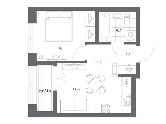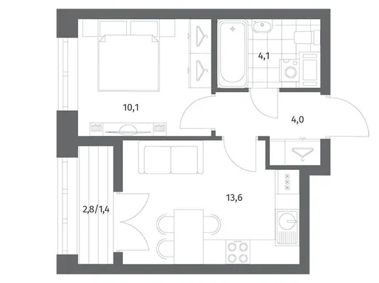 1-комн. от 39,12 до 40,82 м² от 7,03 млн до 9,47 млн ₽