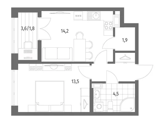 1-комн. от 35,2 до 36,9 м² от 6,35 млн до 6,73 млн ₽