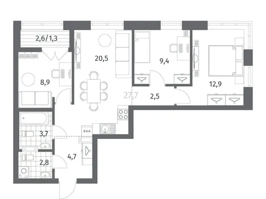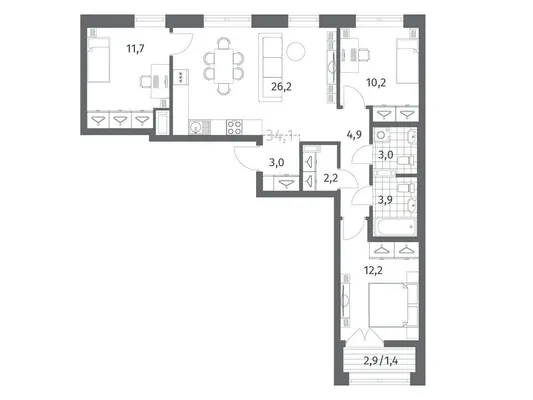 3-комн. 83,38 м² 15,23 млн ₽