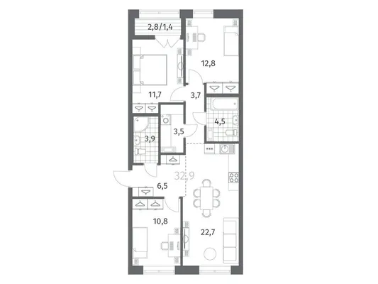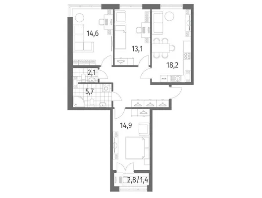 3-комн. от 77,72 до 78,55 м² от 14,06 млн до 14,34 млн ₽