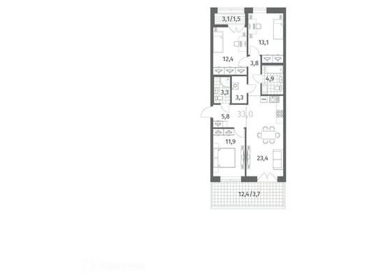 3-комн. от 66,85 до 66,96 м² от 12,09 млн до 12,43 млн ₽