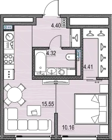 1-комн. от 38,26 до 38,94 м² от 14,39 млн до 15,68 млн ₽