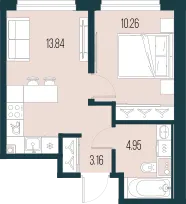 1-комн. от 39,04 до 39,83 м² от 13,84 млн до 17,41 млн ₽