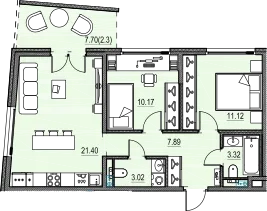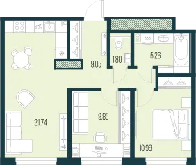 2-комн. 62,09 м² от 20,79 млн до 21,12 млн ₽
