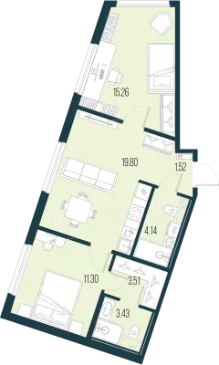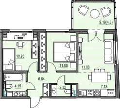 2-комн. 56,91 м² от 19,95 млн до 21,52 млн ₽
