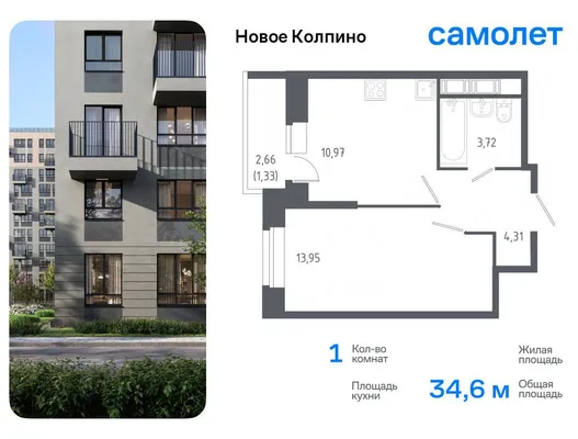 1-комн. 34,6 м²