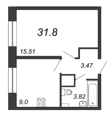 1-комн. от 31,8 до 32 м²