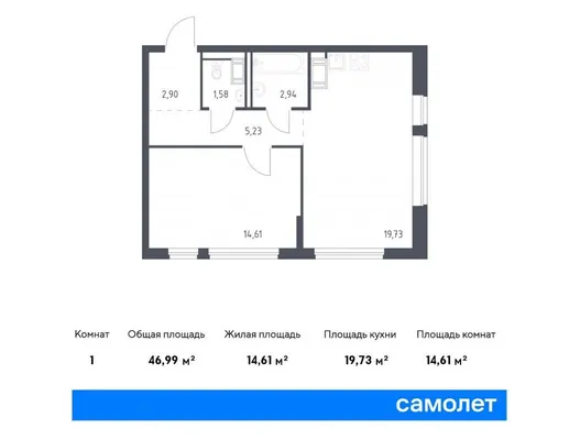 1-комн. 46,99 м²