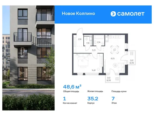 1-комн. 48,57 м²