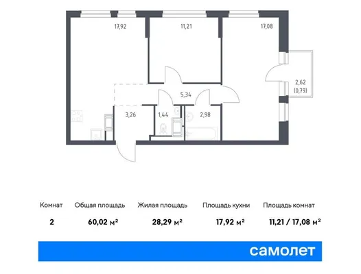 2-комн. 60,02 м²