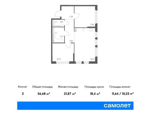 2-комн. от 55,42 до 56,71 м²