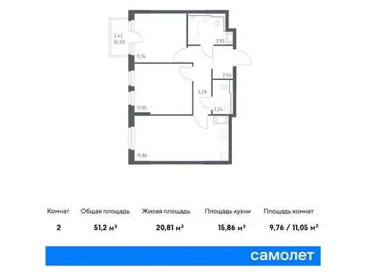 2-комн. 51,2 м²