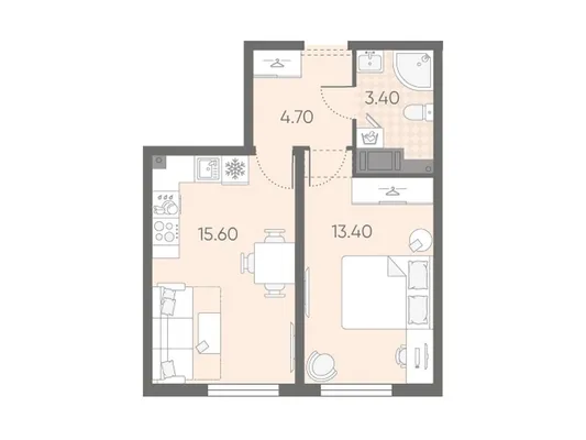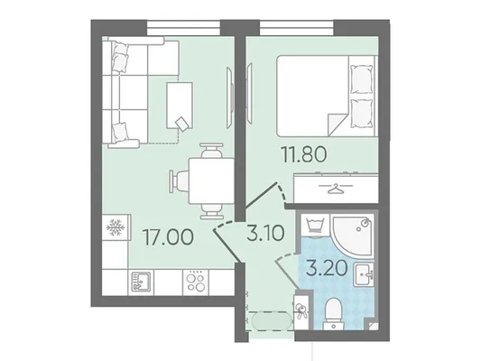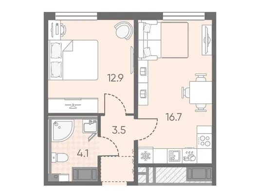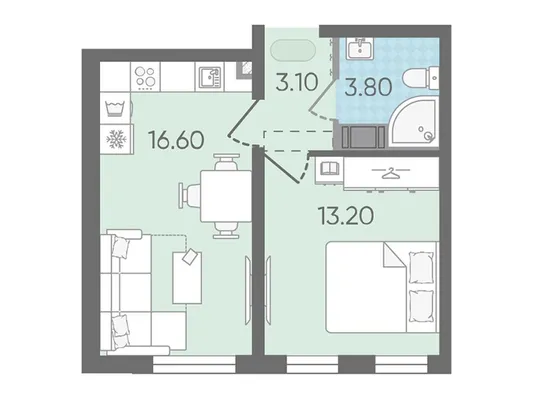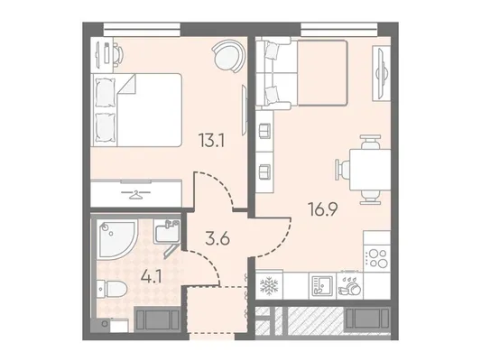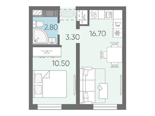 1-комн. от 33,2 до 33,5 м² от 9,95 млн до 10,32 млн ₽