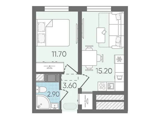 1-комн. от 37,2 до 37,7 м² от 9,47 млн до 9,74 млн ₽