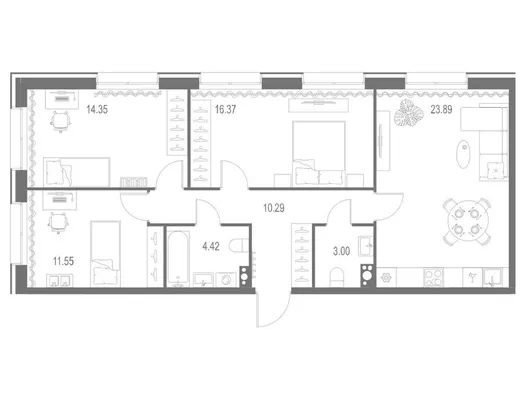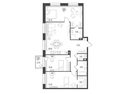 3-комн. 119,32 м² от 84,36 млн до 88,67 млн ₽