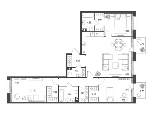 3-комн. 105,38 м² 89,27 млн ₽