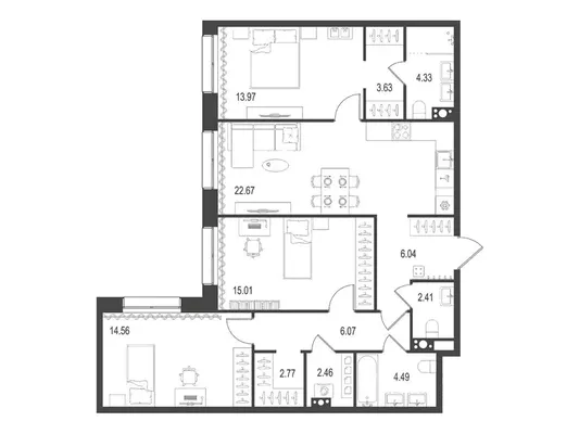 3-комн. 98,41 м² от 83,36 млн до 86,96 млн ₽