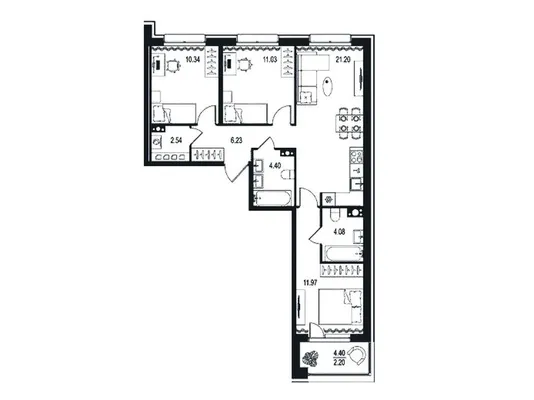 3-комн. 78,97 м² от 33,22 млн до 36,92 млн ₽