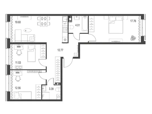 3-комн. от 76,7 до 76,92 м² от 33,34 млн до 35,44 млн ₽