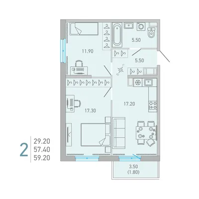 2-комн. 59,2 м²