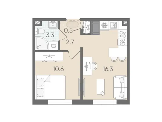 1-комн. от 33,1 до 34,1 м² от 6,28 млн до 6,60 млн ₽
