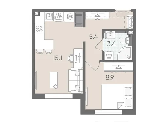1-комн. от 33,4 до 34,8 м² от 6,41 млн до 7,01 млн ₽