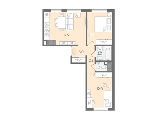 2-комн. 51,9 м² от 9,80 млн до 9,98 млн ₽