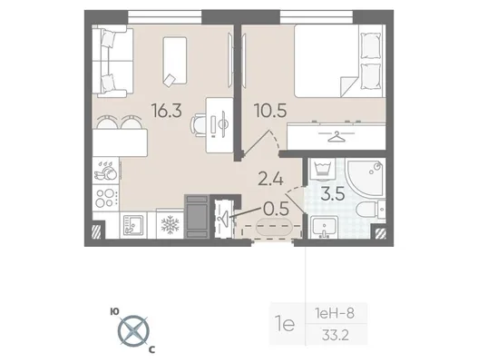 1-комн. от 33,2 до 34,8 м² от 6,14 млн до 6,71 млн ₽