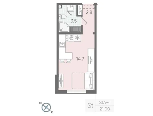 студия от 21 до 22,6 м² от 3,81 млн до 4,15 млн ₽
