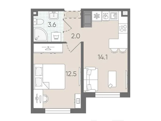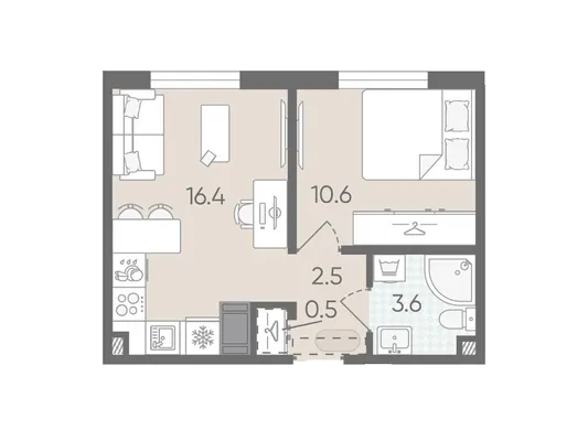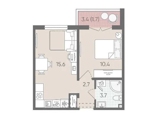 1-комн. от 31,4 до 32,7 м² от 5,95 млн до 6,20 млн ₽