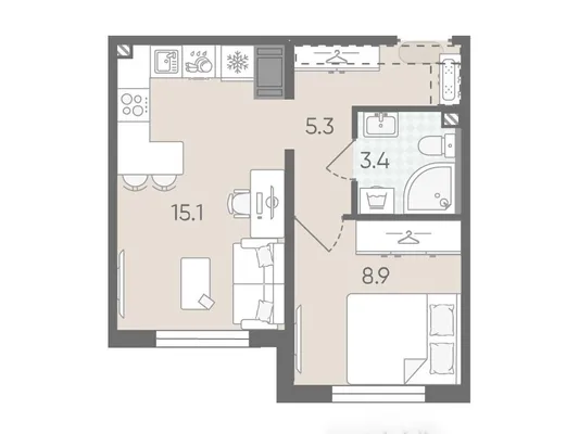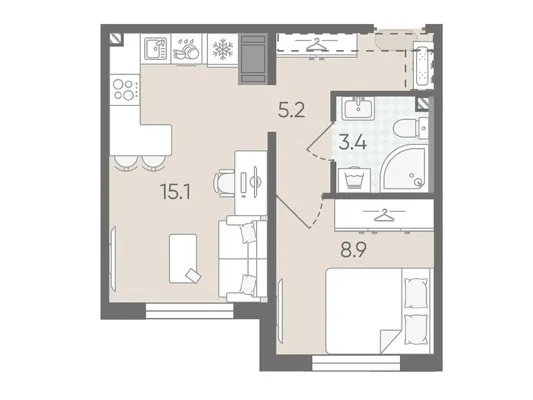 1-комн. от 33,1 до 34,8 м² от 6,23 млн до 6,52 млн ₽