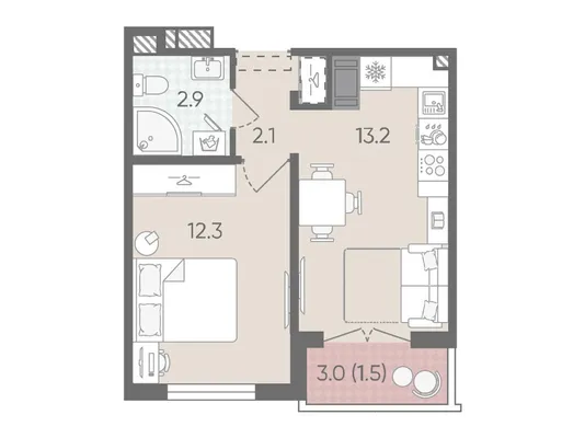 1-комн. от 32 до 32,5 м² от 5,95 млн до 6,15 млн ₽