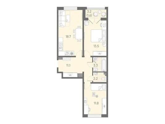 2-комн. 63,2 м²