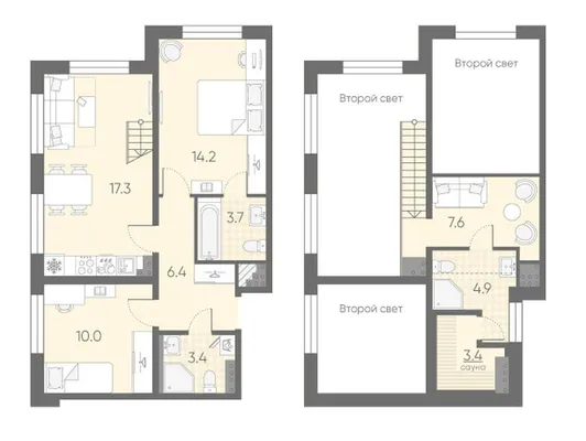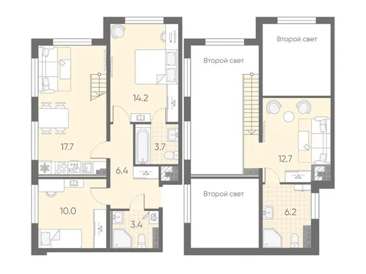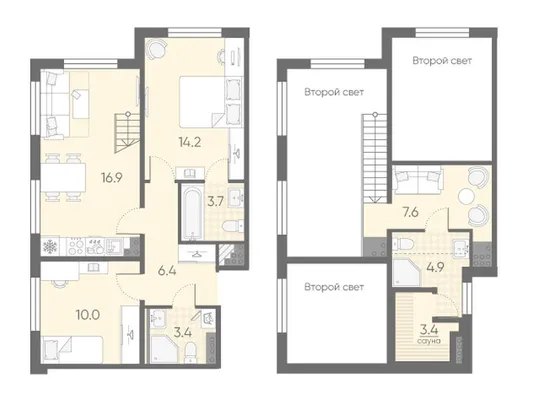 2-комн. от 74,2 до 74,3 м²
