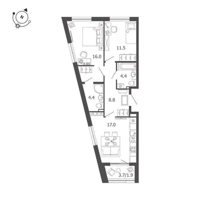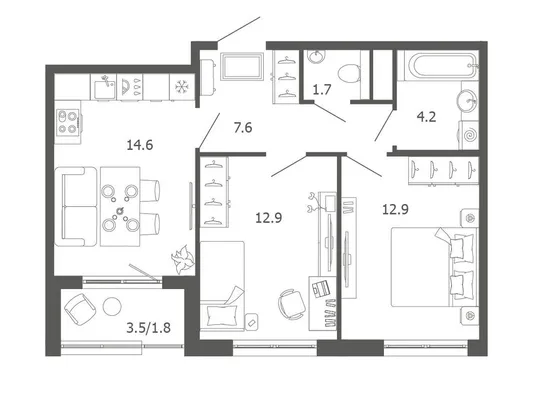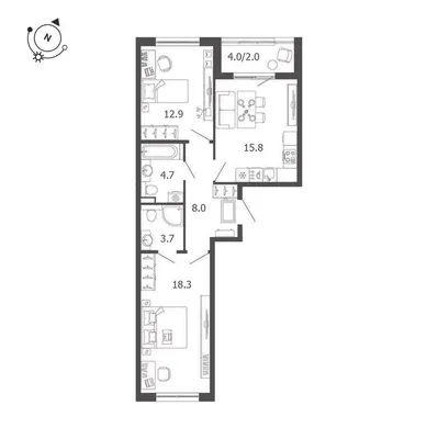 2-комн. 55,7 м²