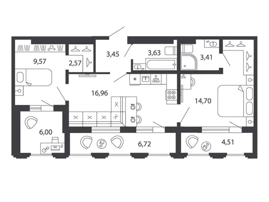 1-комн. 62,91 м²