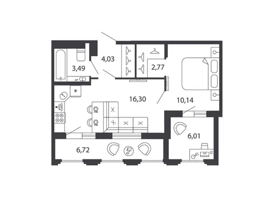 1-комн. 43,1 м²