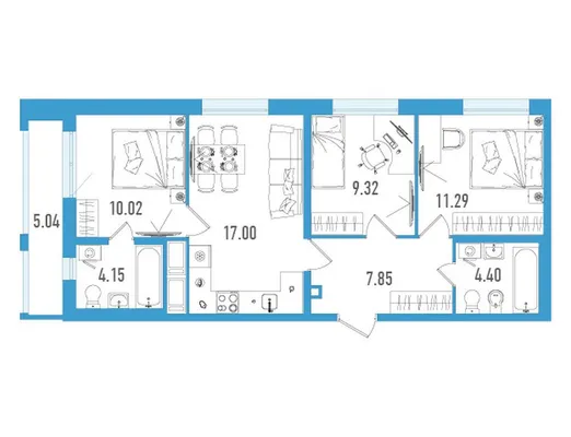 3-комн. 65,54 м²