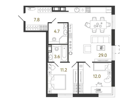 3-комн. 95,6 м² от 26,95 млн до 28,30 млн ₽
