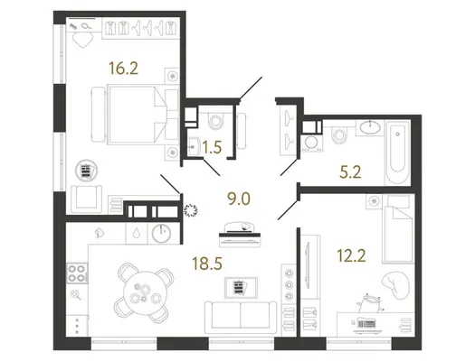 2-комн. 68,2 м² от 22,05 млн до 22,48 млн ₽