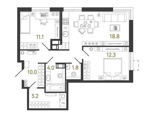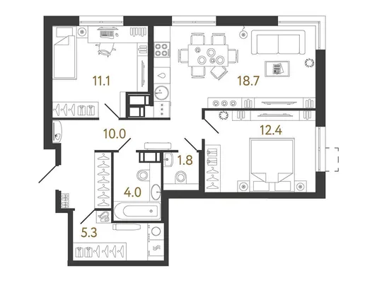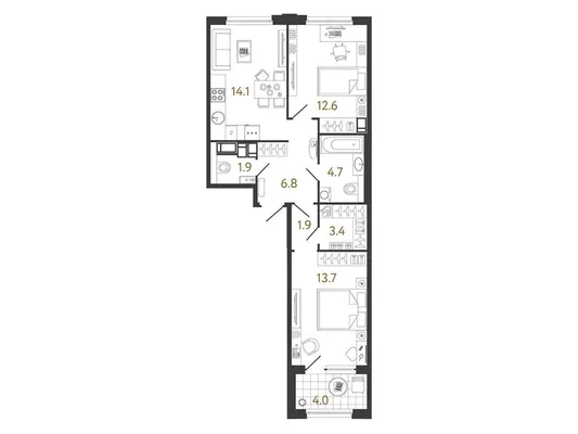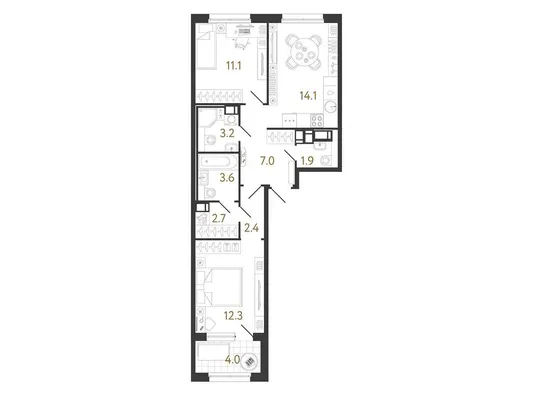 2-комн. 59,2 м² от 20,30 млн до 21,12 млн ₽