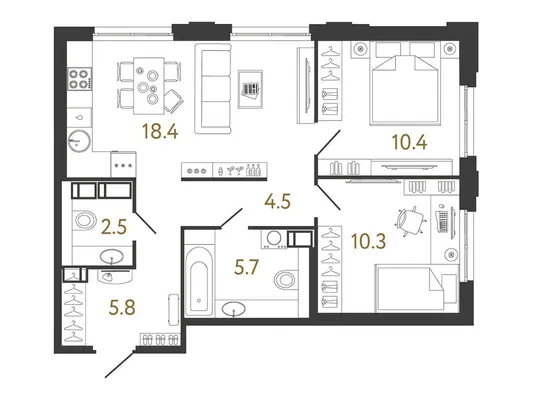 2-комн. от 57,6 до 58,5 м² от 18,04 млн до 20,67 млн ₽