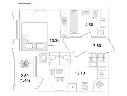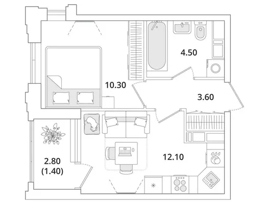 1-комн. от 41,3 до 41,4 м² от 11,87 млн до 11,98 млн ₽